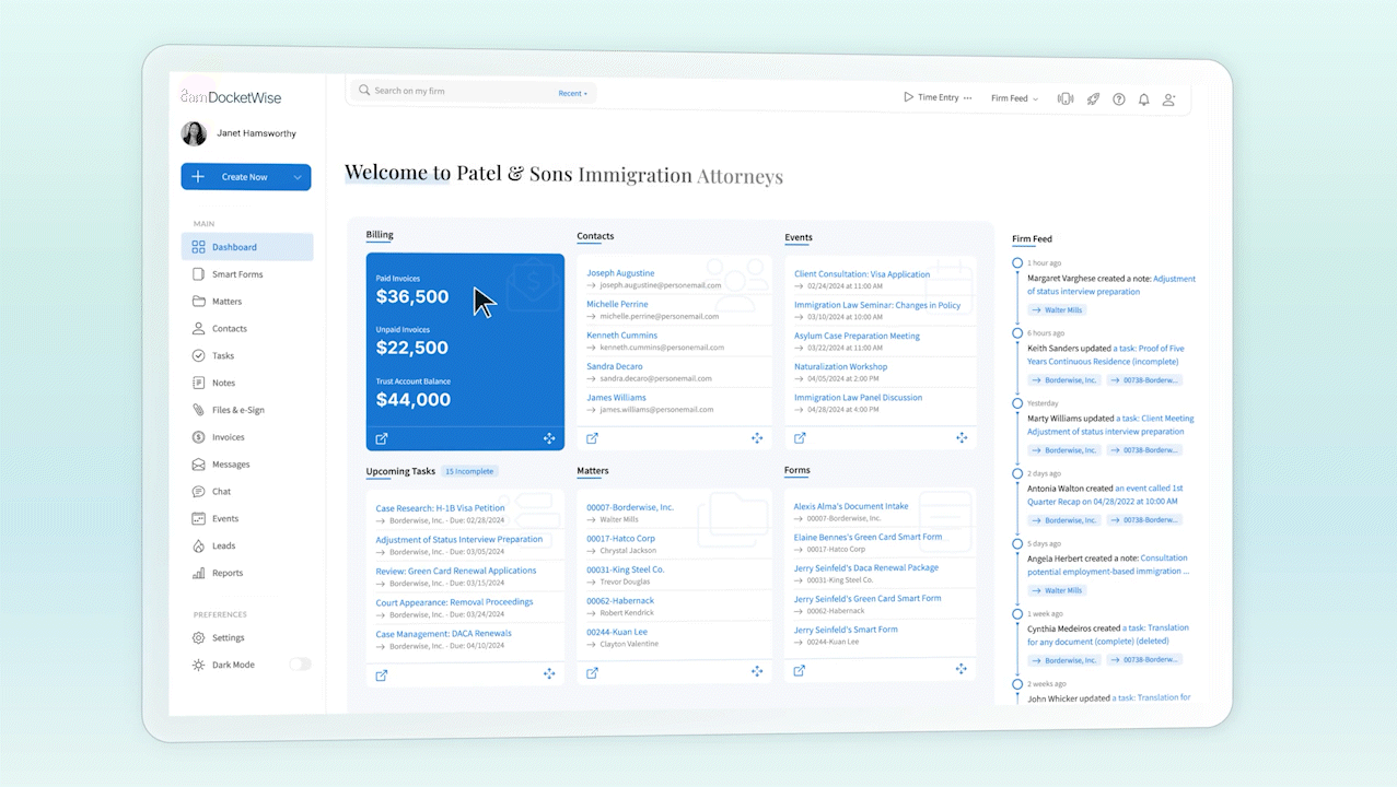 The software streamlines the complex process of handling immigration cases by automating form preparation. This animated video is a high-level introduction to software, designed to live on the home page of DocketWise's website and to be used in paid ads across the web.